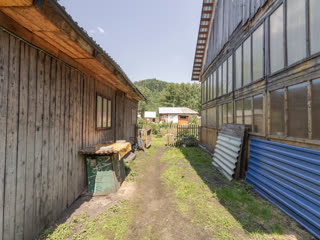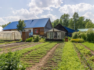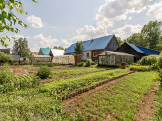 Земельный участок составляет 13 соток, из них 5 в собственности, а 8 в аренде. На участке расположены две теплицы, просторная баня с летней кухней, большое подсобное помещение для хранения инвентаря, угля и дров, а также чердак. Имеется шлаколитой гараж. Бетонные дорожки вокруг дома. Плодородный и ухоженный огород.