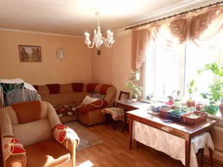 Предлагается к продаже дом, юридически оформленный как квартира на земельном участке, общей площадью 75.8 кв.м. Основная часть дома построена из железобетонных панелей, к которой примыкает пристройка из бруса с теплоизоляцией, все изменения в планировке официально зарегистрированы. Дом очень уютный, светлый и теплый, идеально подходит для большой семьи. Внутри расположены 3 комнаты, просторная кухня, совмещенный санузел с душевой кабиной и отопительным котлом длительного горения, обеспечивающим теплом весь дом. На полу плитка. Система водяного отопления с радиаторами по всему дому, установлены пластиковые окна. Пол бетонный, покрыт ДСП и линолеумом. Подключено центральное водоснабжение, питьевая вода из городской скважины, установлены два бойлера на 80 и 30 литров, канализация – септик. Под пристройкой расположен сухой подпол глубиной 160 см. Имеется большая веранда, установлены надежные входные двери. Часть мебели остаётся новым владельцам.
